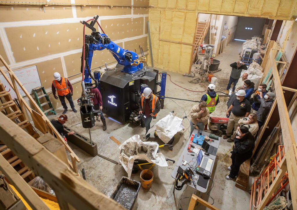 In addition, the 3D-printed wall panels for the Toano home are being produced using a large-scale Tvasta concrete printer owned by Virginia Housing and made available at no cost to nonprofits statewide to encourage innovation in housing construction. The specialized concrete mix and pump mechanism used for printing was developed by Hive3D. The mix is approximately three times less expensive than other materials previously used, while maintaining durability and performance standards.